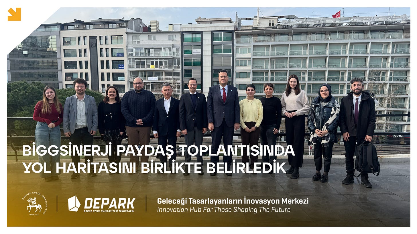 Bu önemli gelişmenin ardından, 1812 – Yatırım Tabanlı Girişimcilik Destek Programı kapsamında yürütücülüğünü Dokuz Eylül Üniversitesi Teknoparkı’nın üstlendiği BİGGSİNERJİ Programı paydaş toplantısını gerçekleştirdik. Programın yeni dönemine ilişkin yol haritası, işleyiş süreçleri ve paydaşlar arası koordinasyon başlıkları ele alındı. Toplantıya ilişkin değerlendirmede bulunan DEPARK Genel Müdürü Prof. Dr. Zeki Atıl Bulut, TÜBİTAK BiGG Programı kapsamında elde edilen bu başarının, DEPARK’ın girişimcilik ekosistemindeki güçlü konumunun bir göstergesi olduğunu vurguladı. Haberin Devamı İçin Tıklayınız!